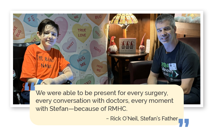 “It was absolutely amazing,” Rick said. “We were given a room with a private bathroom, there were hot meals every night, laundry, and anything else we might need. We didn’t have to think about surviving—we could focus completely on Stefan.”